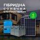 Гібридна сонячна електростанція використовується для зменшення власного споживання від мережі, а також для продажу надлишків згенерованої енергії за "зеленим" тарифом. Також, при відключенні електропостачання мережі, станція здатна забезпечувати споживача електроенергією за допомогою акумуляторних батарей, які заряджаються від надлишків виробленої сонячними панелями енергії. Основними складовими станції є фотоелектричні модулі, гібридний інверторт та акумуляторні батареї.