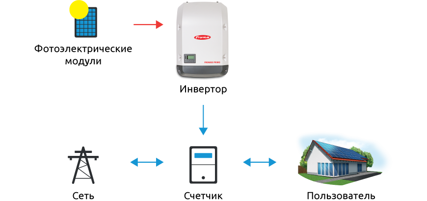 Сетевая солнечная электростанция используется для уменьшения собственного потребления от сети, а также для продажи излишков сгенерированной энергии по "зелёному" тарифу. Основными составляющими станции являются фотоэлектрические модули и сетевой инвертор, который подключается параллельно до уже существующей сети. Согласно Закону Украины "Про электроэнергию", "зелёный" тариф является специальным тарифом, за которым закупается электричество, произведенное с использованием альтернативных источников электроэнергии. Ежемесячно выполняется подсчёт потребленной и сгенерированной в электросеть энергии. Положительная разница оплачивается владельцу на текущий счёт.