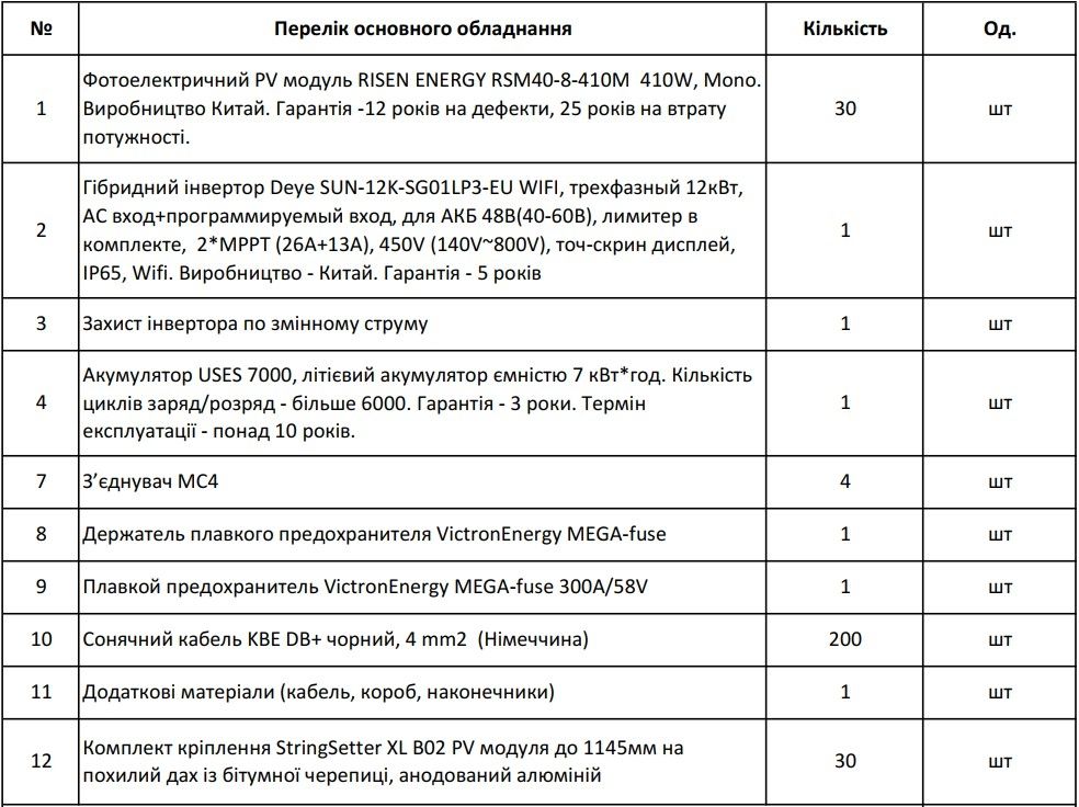 КОМПЛЕКТ ПОСТАВКИ Комплект обладнення