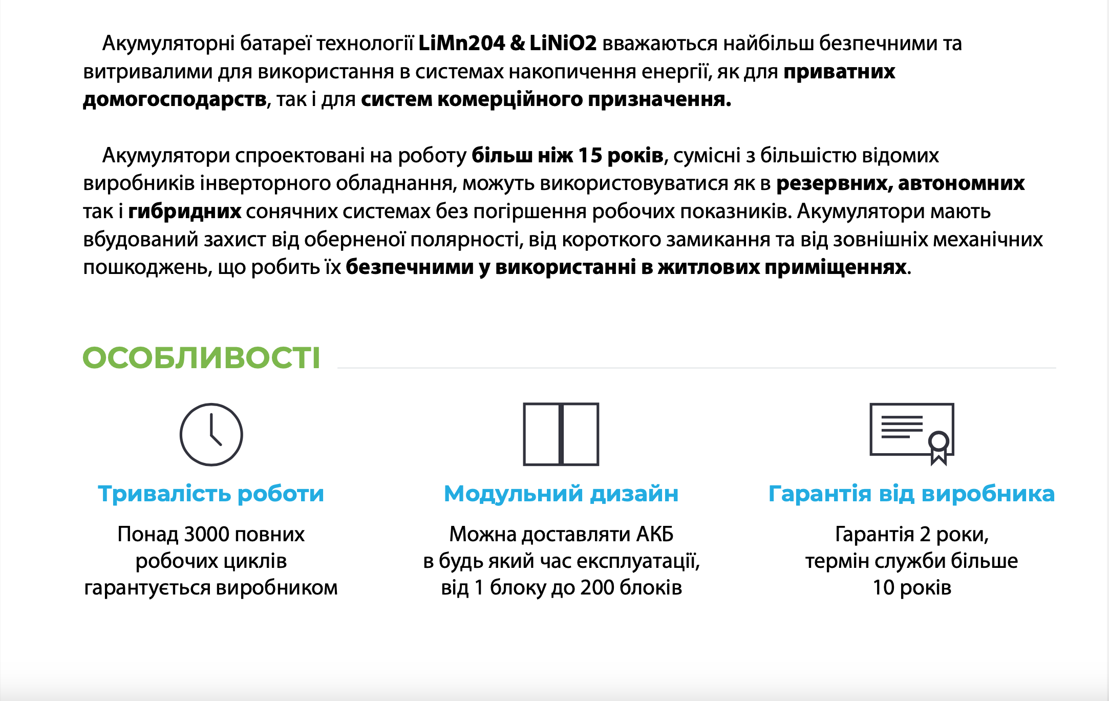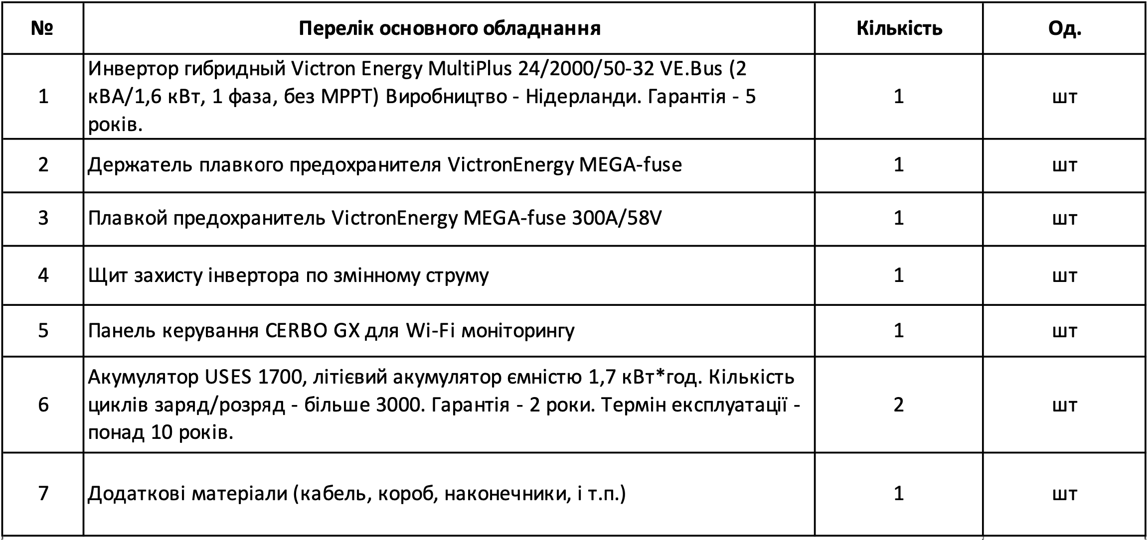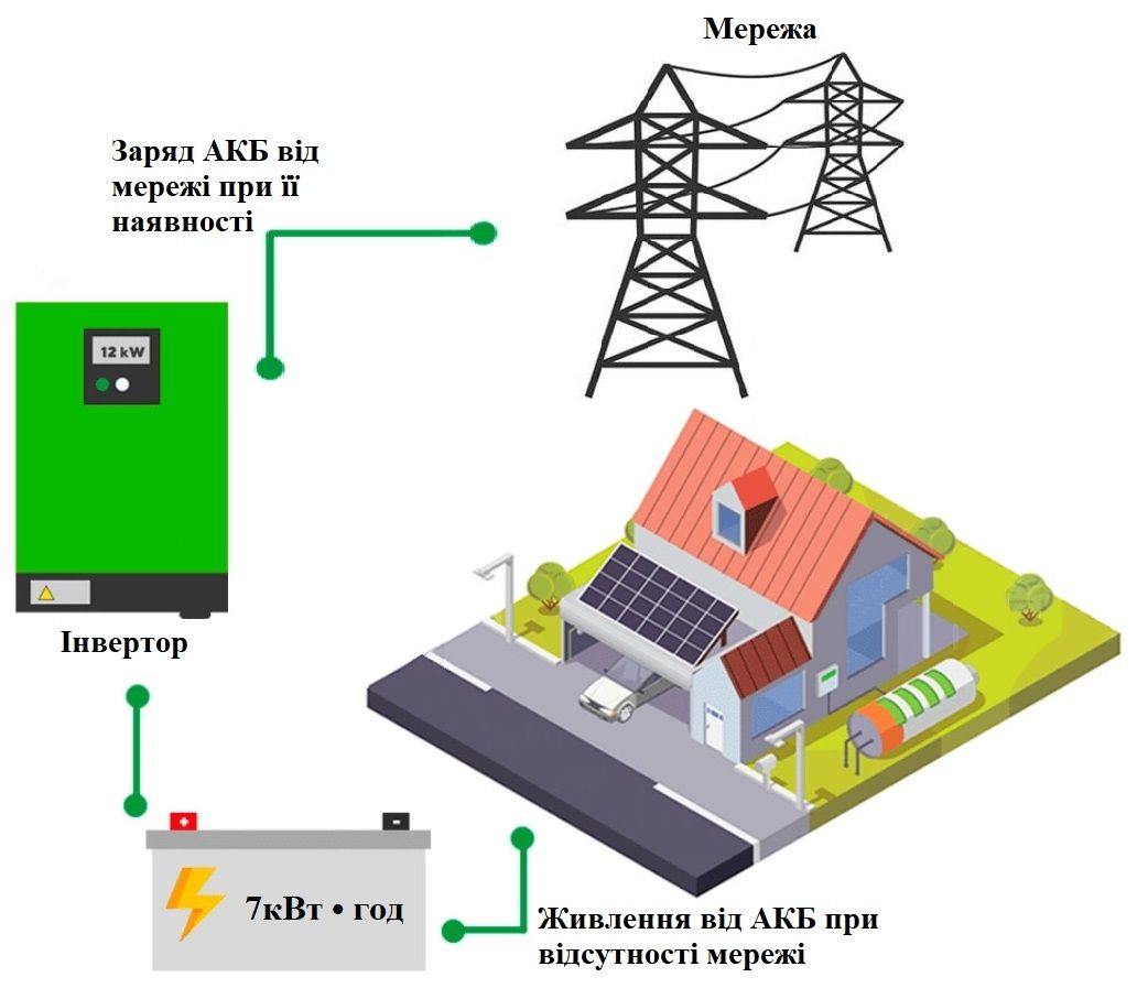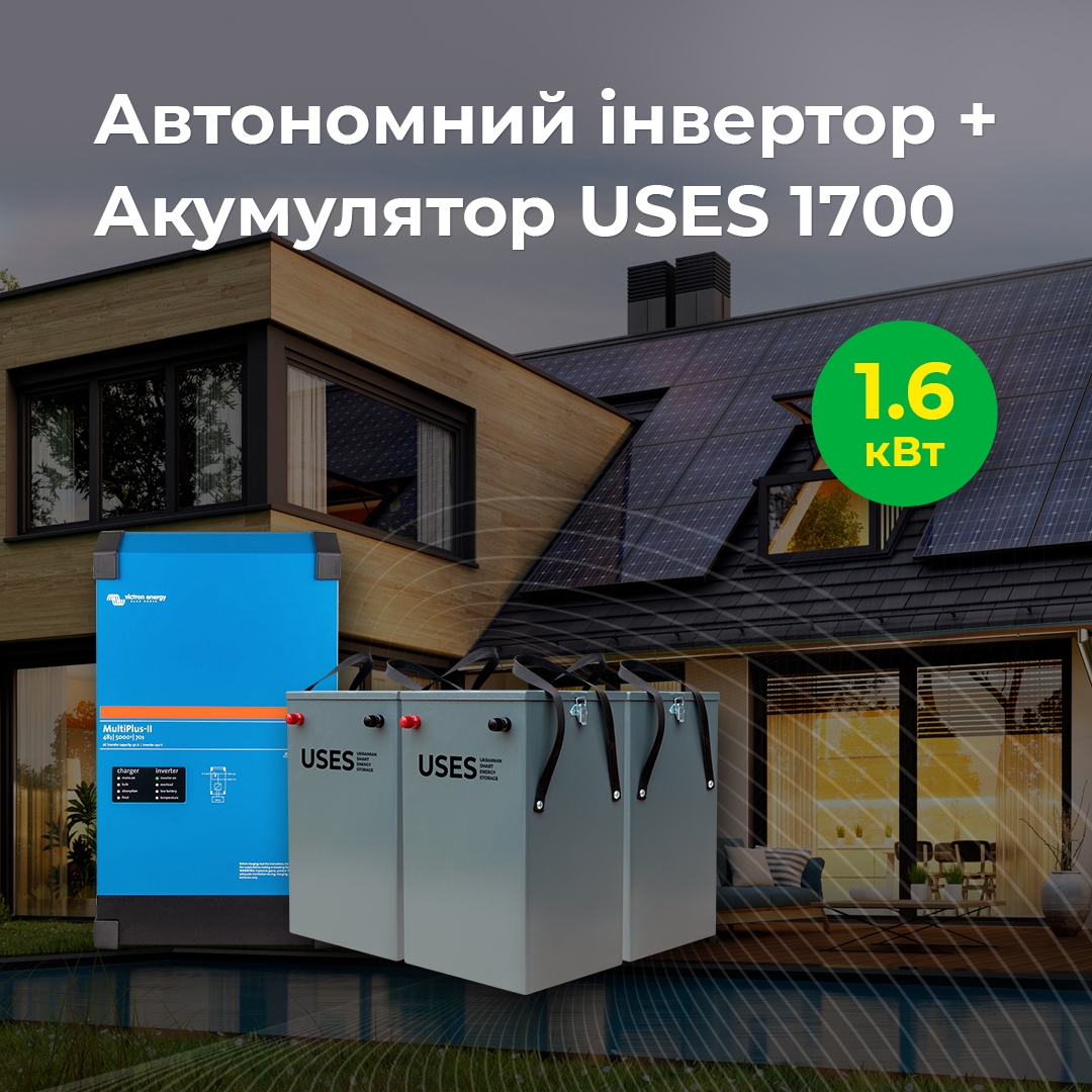 Джерело безперебійного живлення – це гібридна сонячна електростанція без сонячних панелей, які за бажання можна доставити у будь-який момент. Використовується як резеврне джерело електроенергії, при відключенні електропостачання мережі станція здатна забезпечувати споживача електроенергією за допомогою акумуляторних батарей, які заряджаються від мережі. Гібридний інвертор Victron Energy MultiPlus-II – це високоякісний продукт від провідного Нідерландського виробника обладнання для «зеленої» енергетики, вважається одним з кращих інверторів гібридного типу на ринку. Працює в автономному (від акумуляторів) та в мережевому режимах, що дозволяє підключати вашу станцію до державної програми "зелений тариф", оснащений функцією Wi-fi моніторингу, що дозволяє слідкувати за роботою станції, крім того, має вхід для генератора, що дозволить зарядити акумулятори при довгій відсутності мережі.