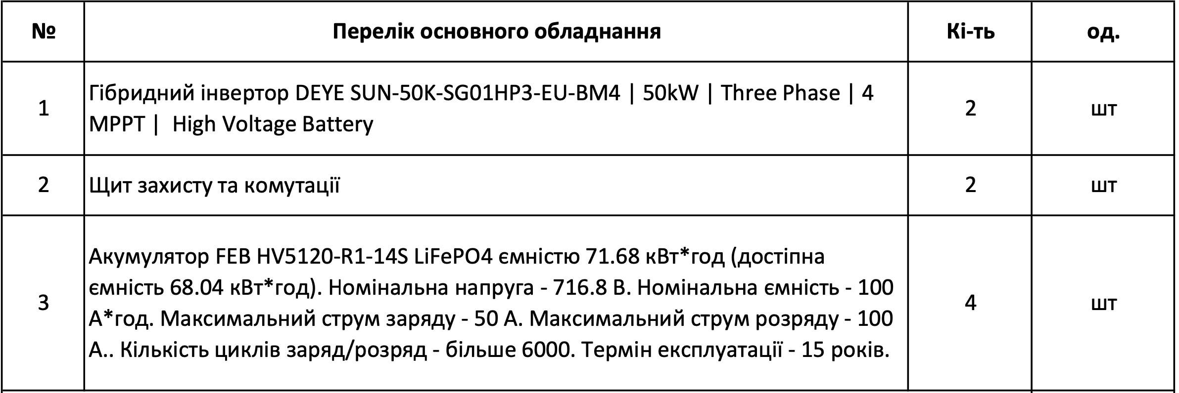 Джерело безперебійного живлення – це гібридна сонячна електростанція без сонячних панелей, які за бажання можна доставити у будь-який момент. Використовується як резеврне джерело електроенергії, при відключенні електропостачання мережі станція здатна забезпечувати споживача електроенергією за допомогою акумуляторних батарей, які заряджаються від мережі. Гібридний інвертор Deye SUN-6K-SG03LP1-EU – це високоякісний продукт від провідного китайського виробника обладнання для «зеленої» енергетики, вважається одним з кращих інверторів гібридного типу на ринку. Працює в автономному (від акумуляторів) та в мережевому режимах, що дозволяє підключати вашу станцію до державної програми "зелений тариф", оснащений функцією Wi-fi моніторингу, що дозволяє слідкувати за роботою станції, крім того, має вхід для генератора, що дозволить зарядити акумулятори при довгій відсутності мережі.