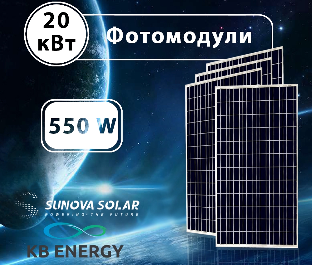 Даний пакет містить сонячні фотомодулі Sunova Solar SS-550-72MDH в количестве 36 шт.